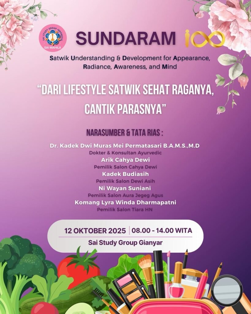 Tanggal: 12 Oktober 2025 | Waktu: 08.00 – 14.00 WITA | Tempat: Sai Study Group, Gianyar | Speaker: Dr. Kadek Dwi Muras Mei Permatasari, B.A.M.S., M.D